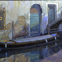 Longboat In A Shadowy Canal II 20x26 $1,650